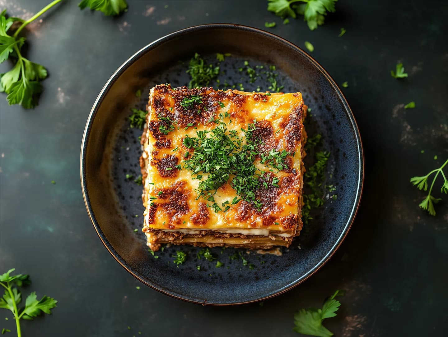 Layers of pasta, slow-cooked meat sauce, béchamel, and Parmesan.
